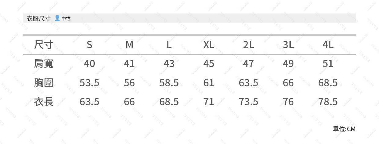7size:中性版(S~4XL)