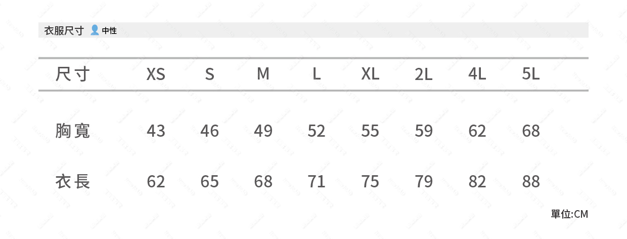 ◎ 建議先進行試穿或拿個人平時穿着的衣服平舖丈量胸寬,再選擇與尺寸表上最為接近的尺寸即可。