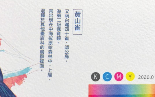 紙張兩面皆為淡淡的鵝黃色,紙面帶有金屬光澤,硬度紮實。印刷圖文光澤炫麗。