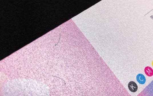 紙張表面具有方格狀細紋,印刷表面略帶格狀光澤質感。