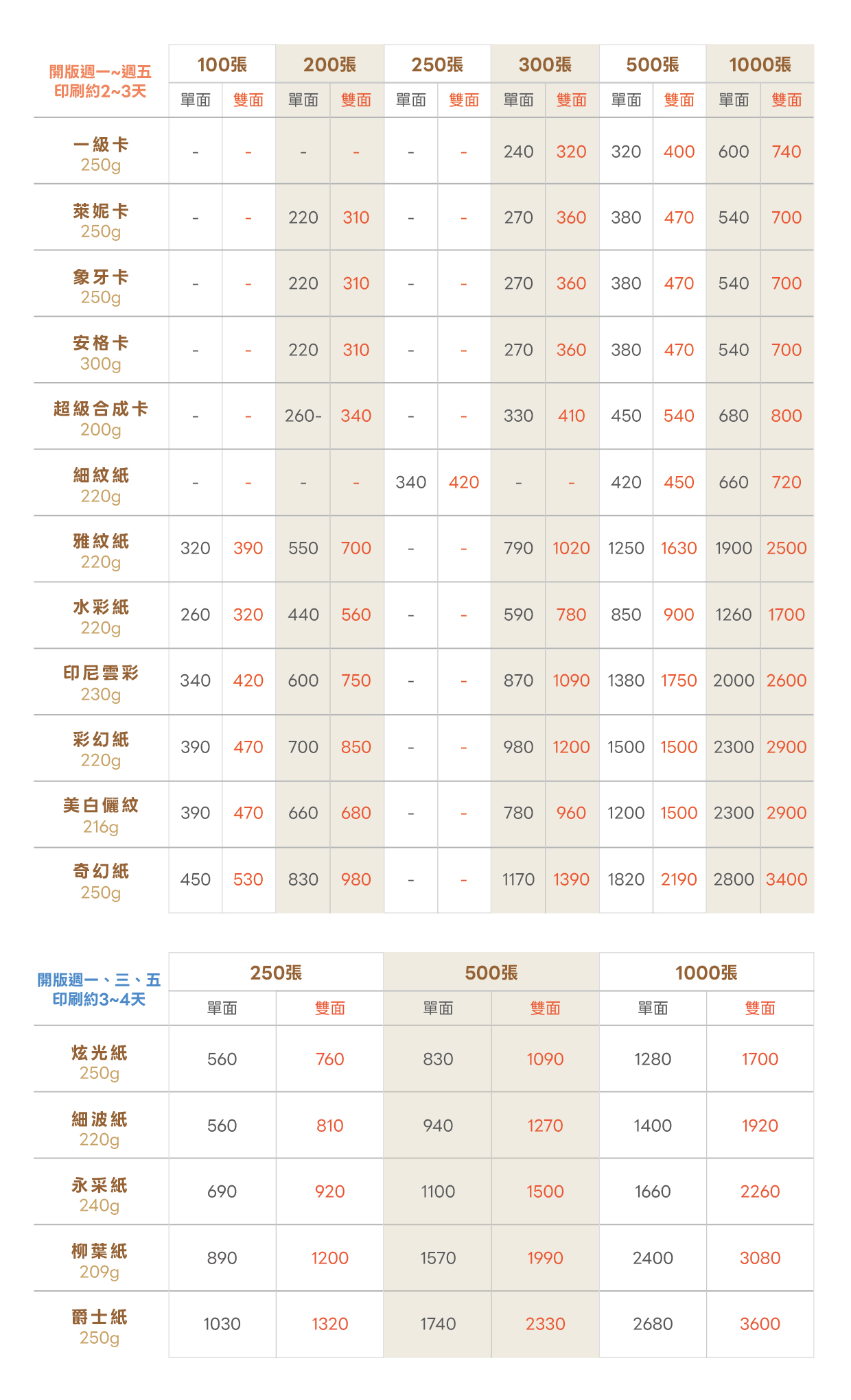 截稿時間:18:00 / 交件天數:2~4天