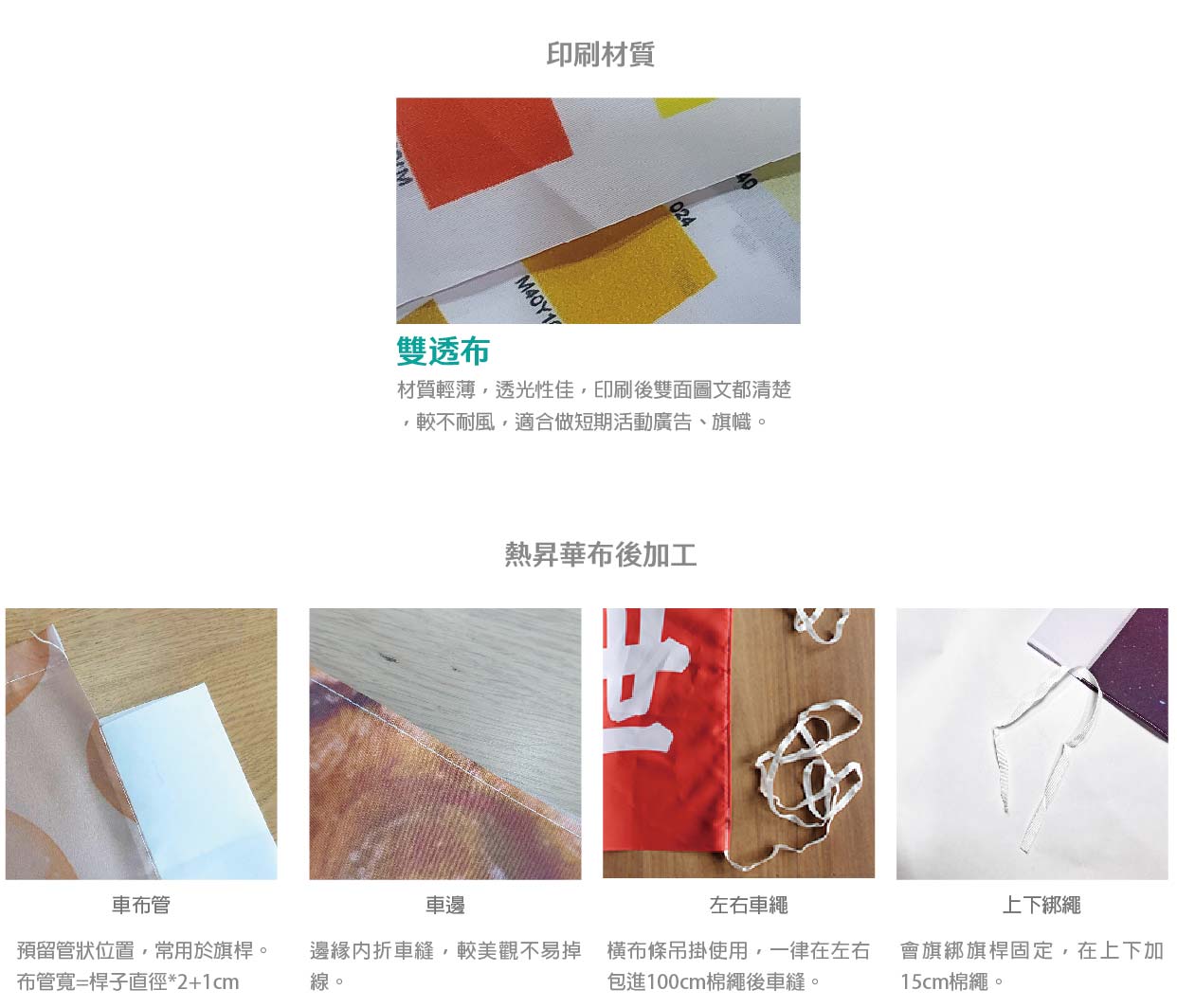 它材質輕便、收納容易,尺寸與樣式可依需求客製,並能印製文字、圖案或品牌標誌。